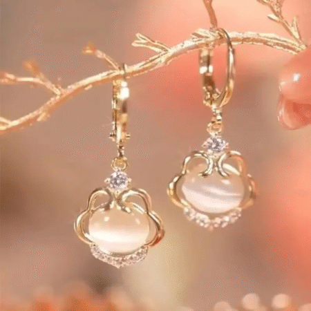 The earrings are typically made from high-quality metal alloys with a gold-plated finish. The cat’s eye stone is a synthetic material designed to mimic the effect.Origin and Symbolism: