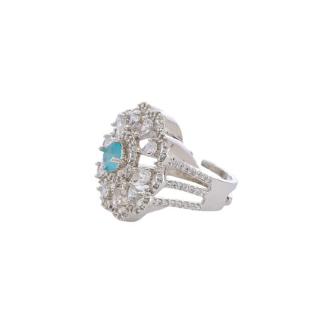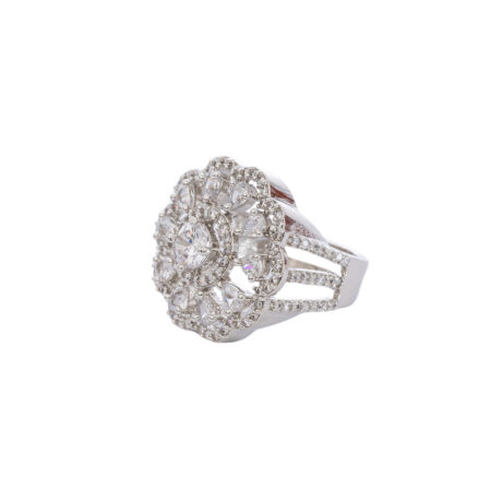 Such rings are often considered suitable for festive occasions, parties, engagements, or as a statement piece in a ring stack.Gemstone : American Diamond, Cubic Zirconia