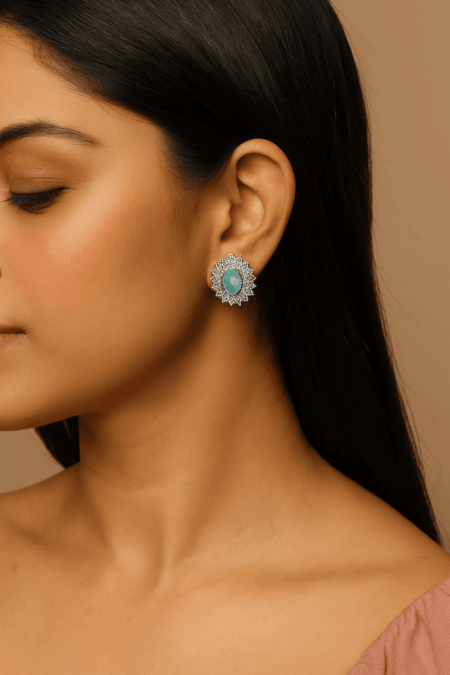 Our classic solitaire studs, The Eden holds a faceted gemstone at its heart, with pave-set CZ American diamonds and Moissanite giving it company.