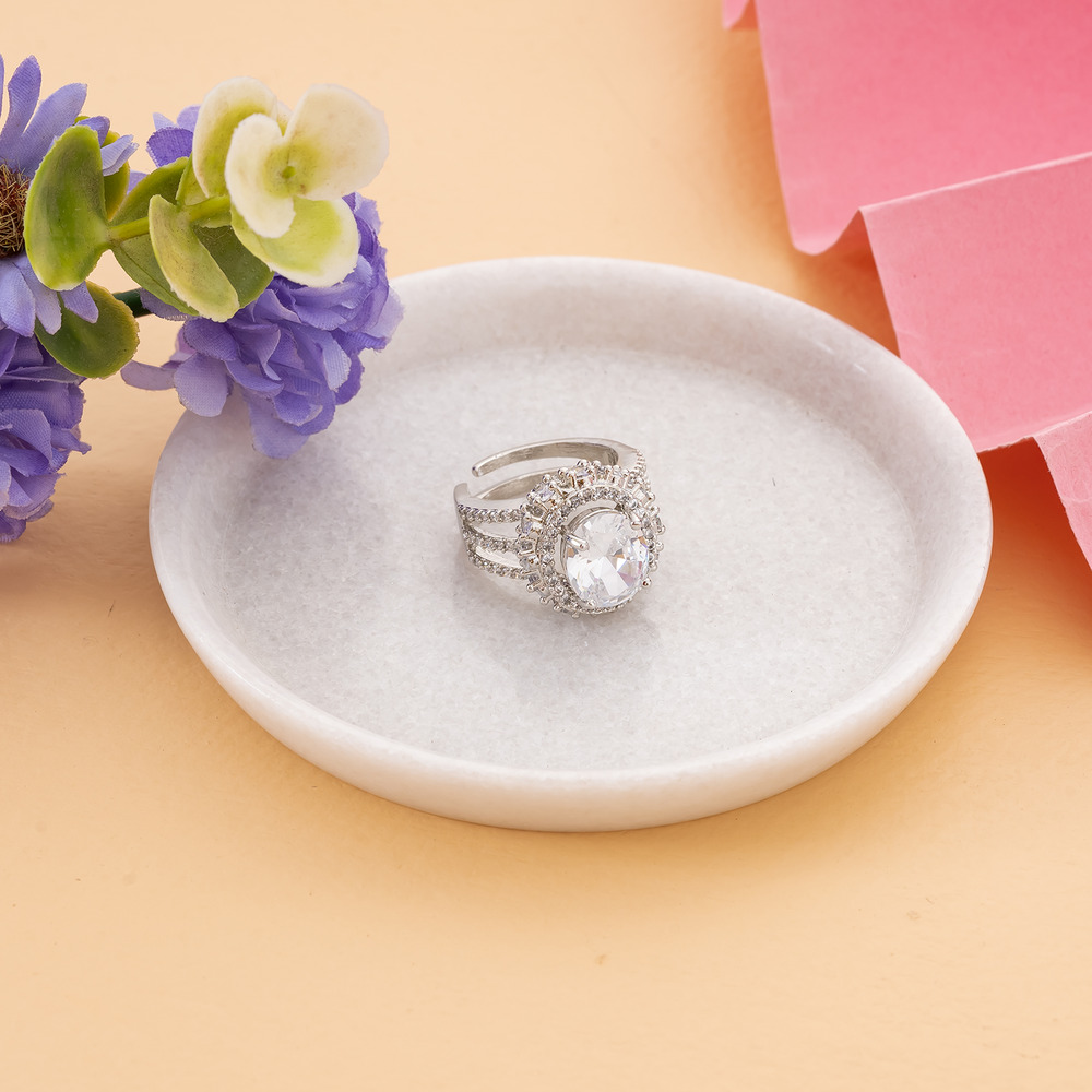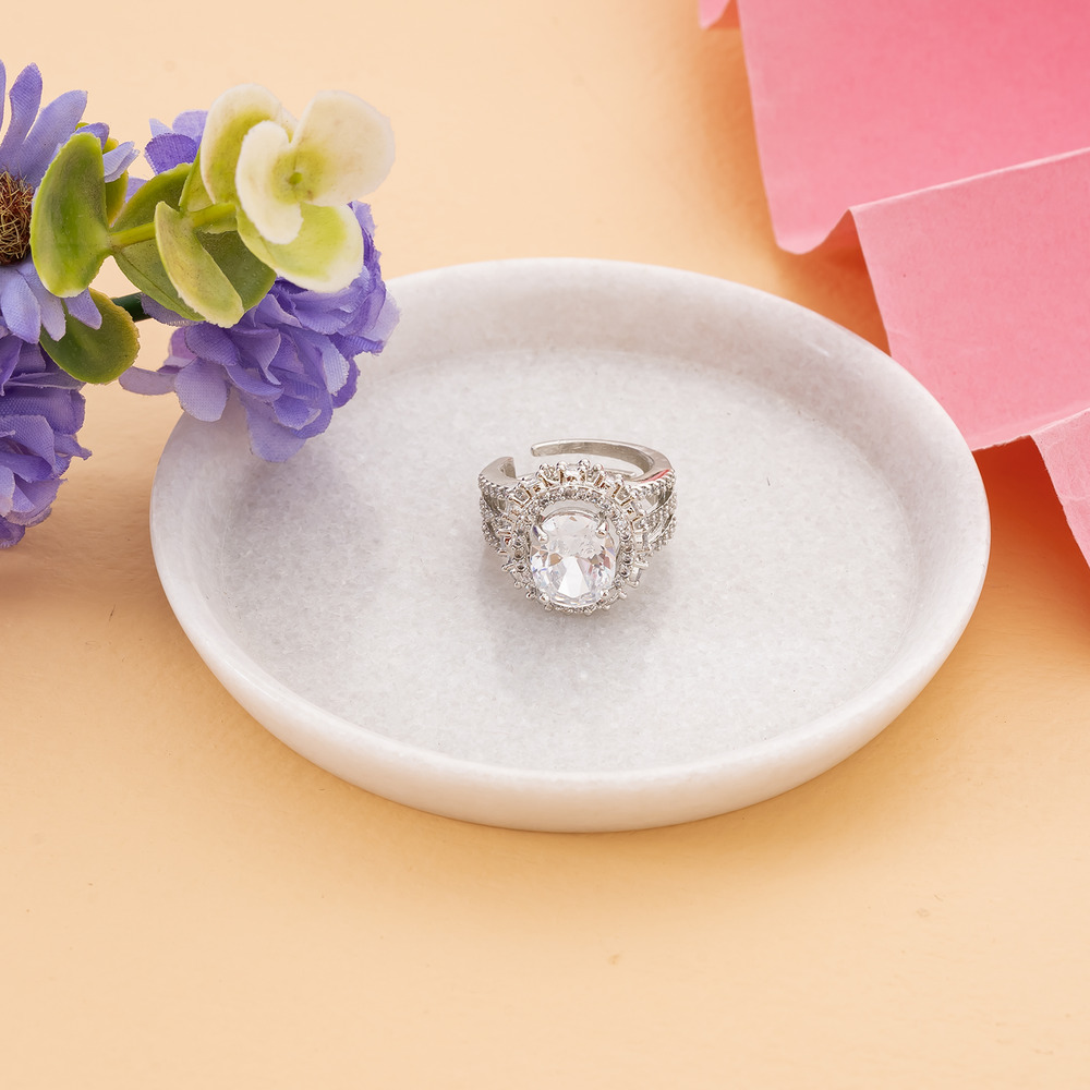 Such rings are often considered suitable for festive occasions, parties, engagements, or as a statement piece in a ring stack.