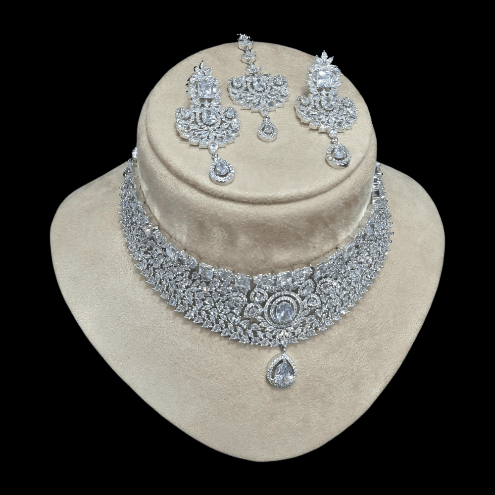 Type: American Diamond (Cubic Zirconia) necklace set.